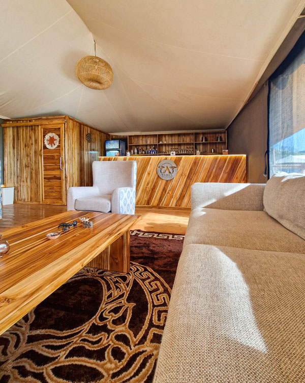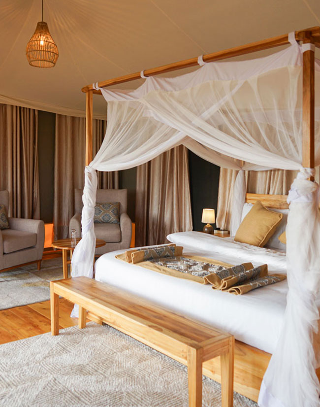 Our Family Suite is ideal for those seeking space and connection, while couples and solo travelers can unwind in elegant tents designed for ultimate comfort. Relax in the guest lounge, rejuvenate with our wellness services, or refine your wildlife photography in the Creative Suite —a quiet workspace with high-speed internet and stunning natural light. Whether you wish to plan a tailor-made safari or simply escape for a few days of peace and beauty, our team is here to make every detail effortless.